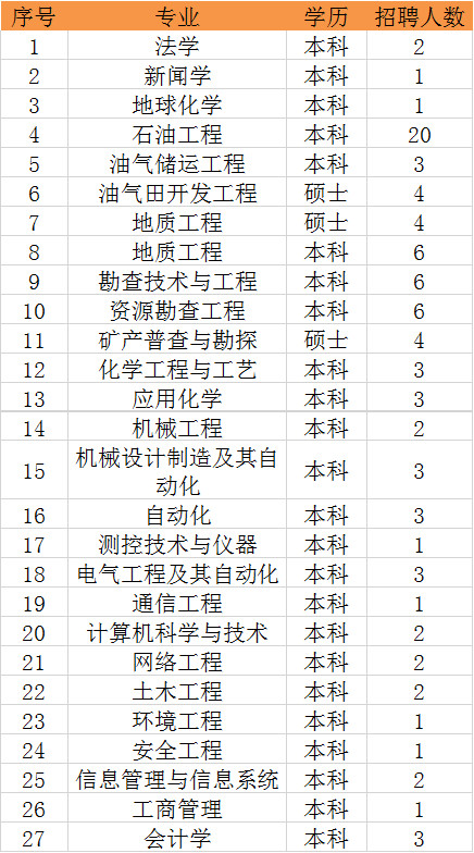 近日,中石油2019年校园招聘正式启动,此次中石油校园招聘的重大改革是启动统一准入考试,考试形式为机试,考试时间为2018年11月17日下午14:00-16:00。在这里,小编为大家整理了中石油各大油田的招聘岗位清单(共1027人),具体情况如下: