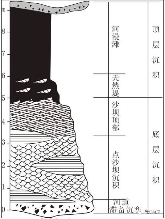 砂质辫状河的地貌单元及垂向沉积序列示意图