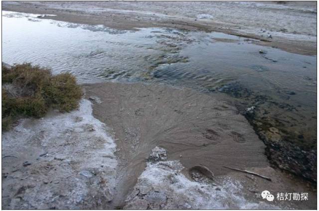 A、与冲击平原呈指状交错变化;B、与干盐湖呈指状交错变化