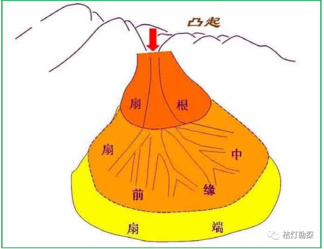 冲积扇(Alluvial Fan):发育在山谷出口处,主要由暂时性洪水水流形成、范围局限、形状近似于圆锥状的山麓粗碎屑堆积物(地貌学和第四纪地质学界将其称为洪积扇)。