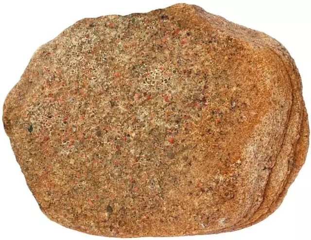特性:粒径大于2mm的圆形岩石碎屑或矿物颗粒经岩化作用形成的岩石。 砾岩间隙中含有较小的颗粒。 形成于河床、鹅卵石海滩或其他碎屑物为圆形的环境。